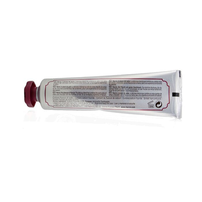 A rich, creamy & uniquely flavored toothpaste Contains Fluoride to prevent tooth decay while combating tartar & plaque Flavored with hints of cherry & deep chocolate plus classic mint Offers a long-lasting pleasurable taste sensation Keeps breath fresh all day long Leaves teeth clean, protected & healthy Packaged in the distinctive colourful Marvis tube with an elegantly sculpted cap